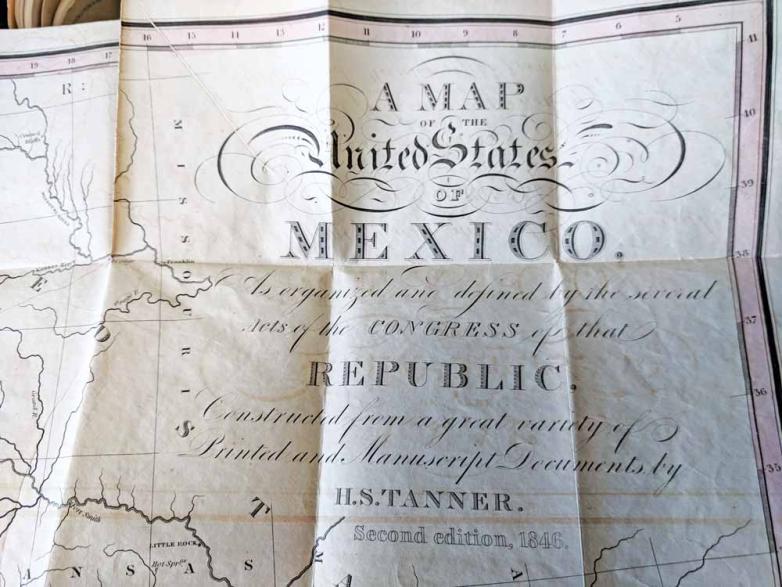 $15k Another historical item that seems to speak to current affairs, here is Henry Schenck Tanner’s Map of the United States of Mexico…, published in Philadelphia in 1846. (It’s the second edition of the 1832 map.) The bookseller called it “A remarkably brightly colored example of the important map of the United Mexican States, which played an integral role in the shaping of the U. S. boundary with Mexico.”