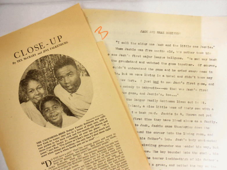 The papers reveal many interesting aspects of Safire’s careers as a reporter and a public relations executive prior to his tenure with the New York Times. After dropping out of college, Safire was hired by public relations man Tex McCrary as a researcher and writer at the New York Herald Tribune. He wrote for the paper’s “Close-Up” column, where he interviewed many celebrities, such as Jackie Robinson and Marlon Brando. Although Safire performed much of the legwork for McCrary, he did not always have an easy time gathering usable material from his subjects. During one particular interview with Broadway producer George Abbott, Safire’s typewritten notes state that the “interview was long on chatter and short on material,” adding “whenever I would ask him a hot question, he would lean back in his chair, smile and say, ‘No, I don’t think I’m ready to bare my soul to the press.’”