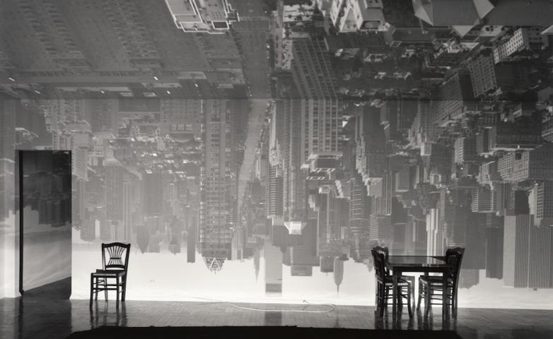 Abelardo Morell's Camera Obscura Image of Manhattan View Looking South in Large Room, 1996. Gelatin silver print.